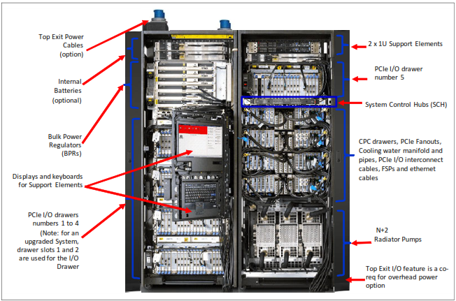 IBM z13 System - vista frontal interna com refrigeração a ar, CPC, modelo NC9 ou NE1